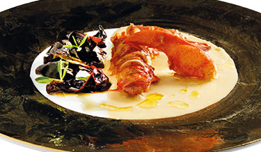 Astice in due cotture su crema di cannellini montata all'olio, bietola...